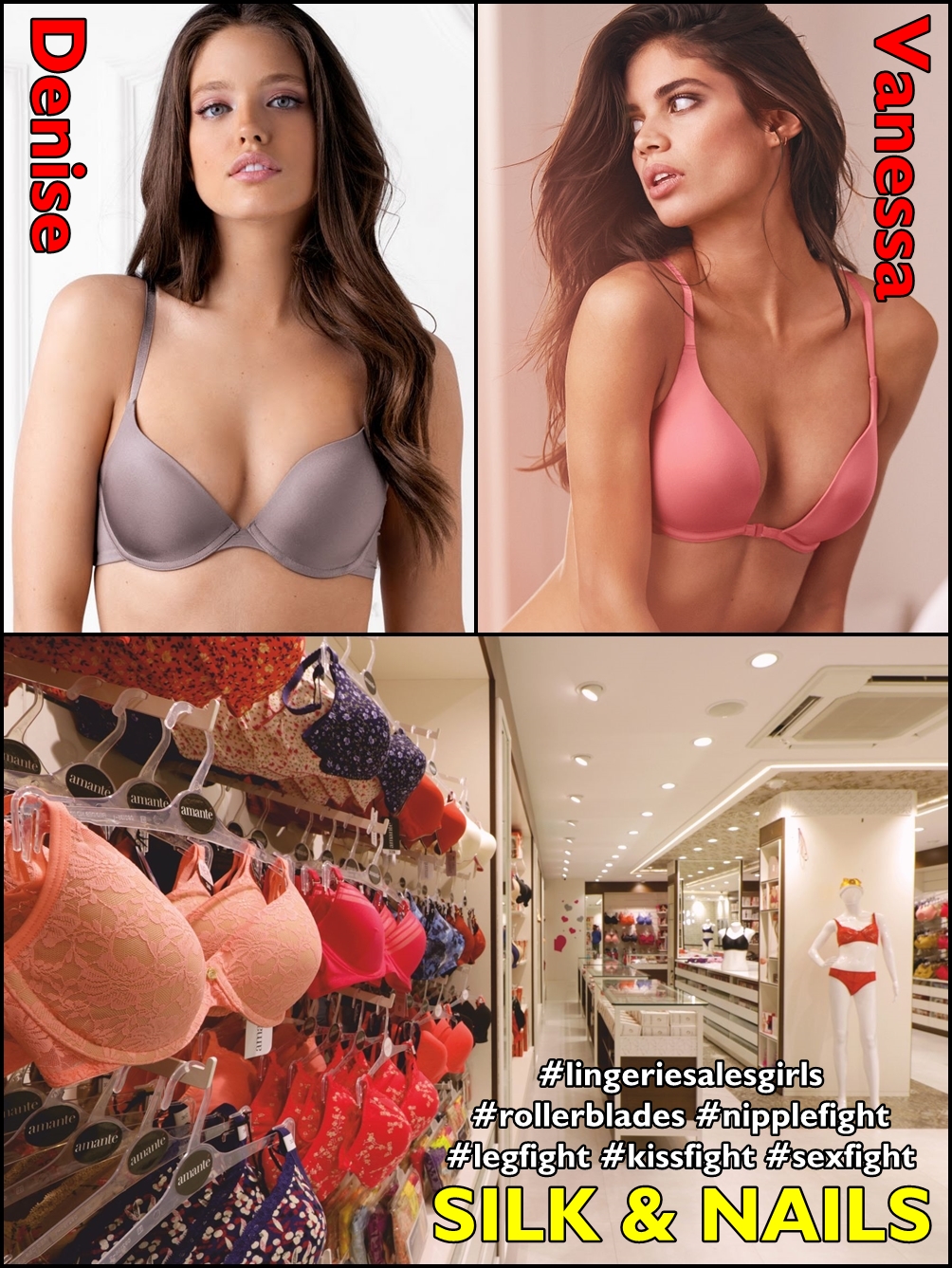 Summary: Hatred and jealousy between co-workers Denise and Vanessa is growing. Attending to their customers on skates in the best lingerie store in town, the two beauties compete in secret until, sick of the tense situation, they meet at the store after hours. With skates and the best lingerie in the store, they will fight each other with their three best virtues: lips, nipples and legs.